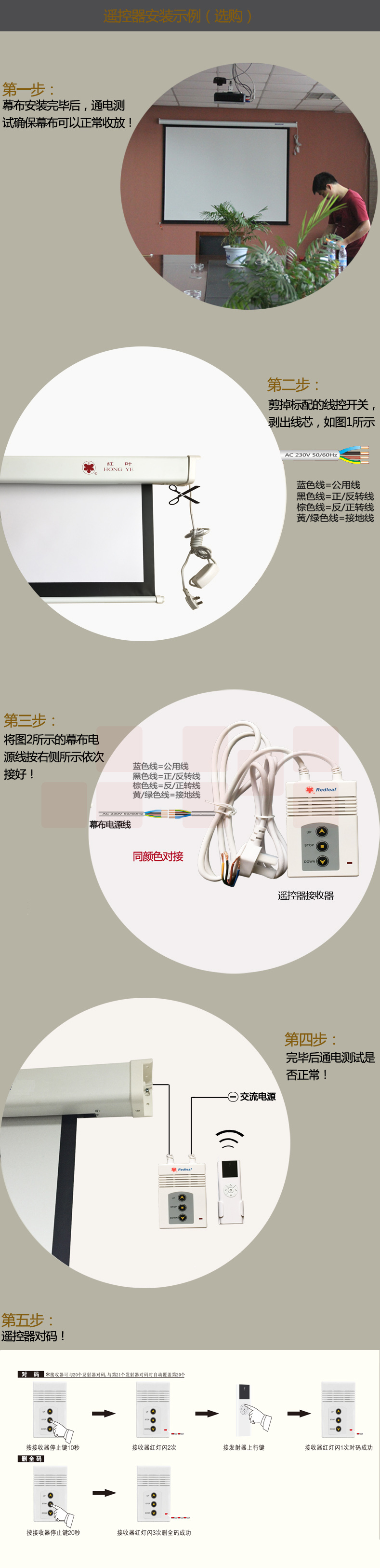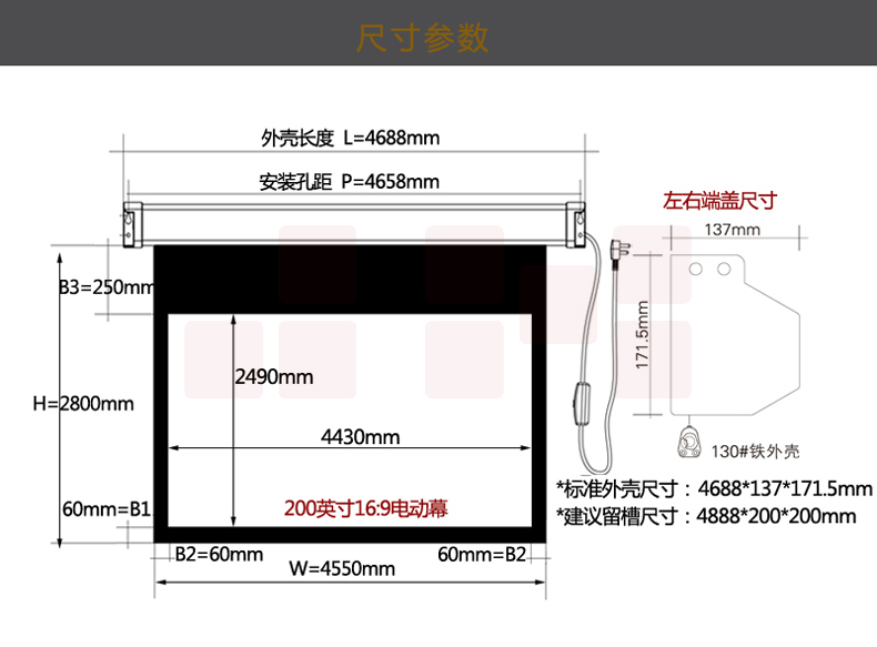 红叶 电动投影幕布200寸16:9白塑幕玻珠幕高清家用幕布 4.43*2.49