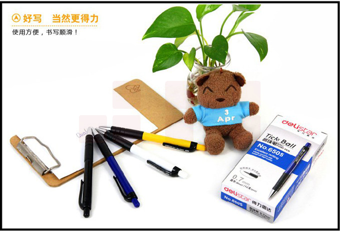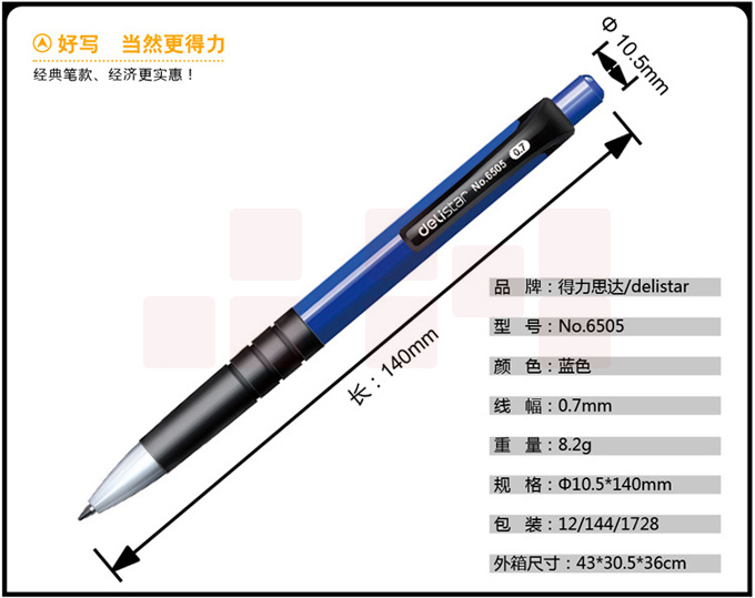 得力 6505 0.7mm按纽式圆珠笔 蓝色 按盒销售