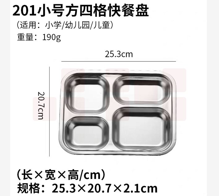 201小号方四格快餐盘 四格餐盘 25.3*20.7*2.1cm 货号:JC