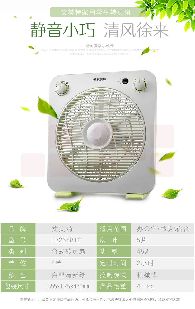 艾美特台式转页扇家用迷你静音定时鸿运电风扇FB2558T2