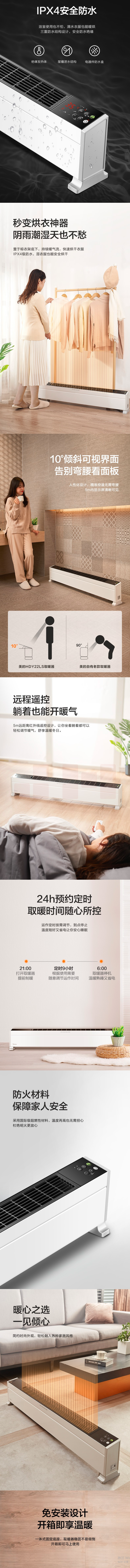 美的 HDY22LS 取暖器 内置加湿 电暖气 踢脚线移动地暖器 (智能遥控)