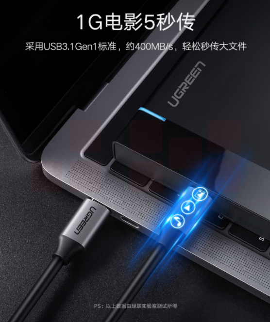 绿联 Type-C公对公数据线 PD快充USB3.1手机充电线 双头USB-C转接头线 支持华为P20苹果MacBook笔记本1.5米50751