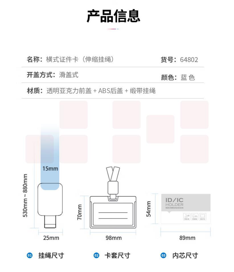 得力(deli) 64802 横式胸卡证件卡套 高透亚克力可伸缩挂绳