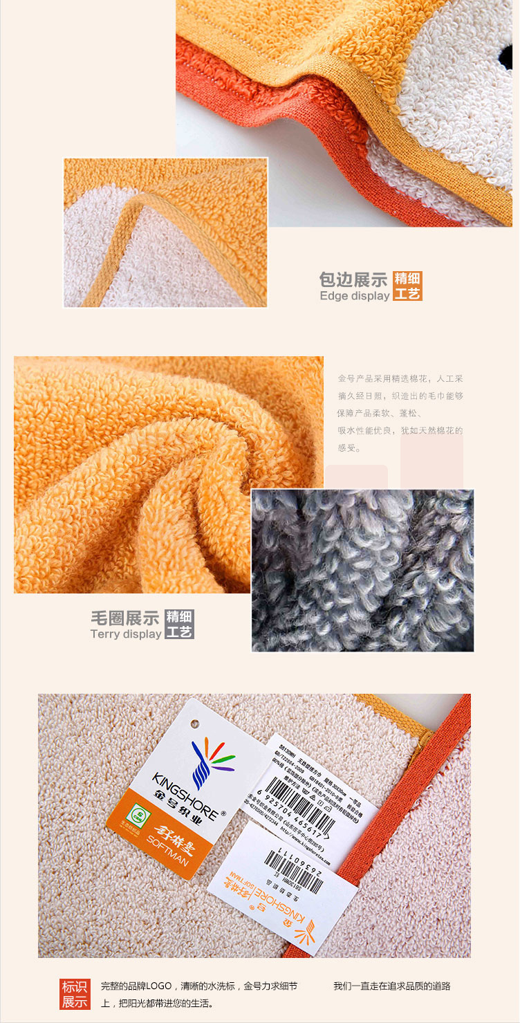 金号毛巾 S6130WH儿童毛巾 纯棉儿童小方巾3条装 30*30cm