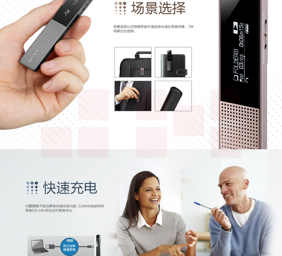索尼(SONY)ICD-TX650 数码锂电录音棒 16G 黑色 会议录音