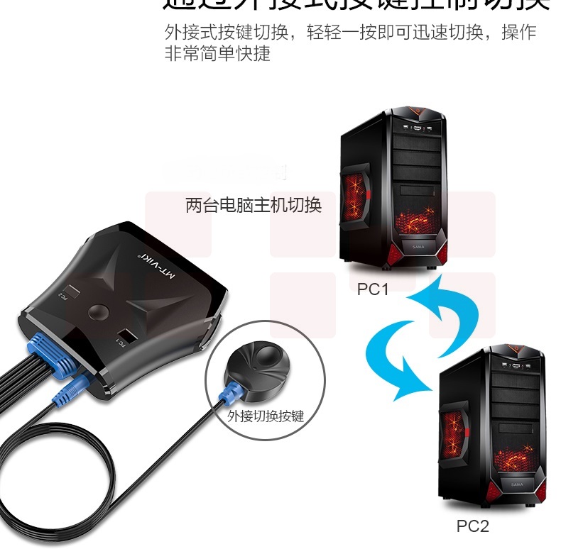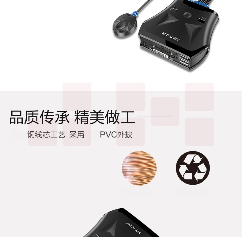 迈拓维矩 DVI高清切换器 KVM切换器usb2口 二进一出多电脑DVI显示器键鼠共享器 2口MT-201DL