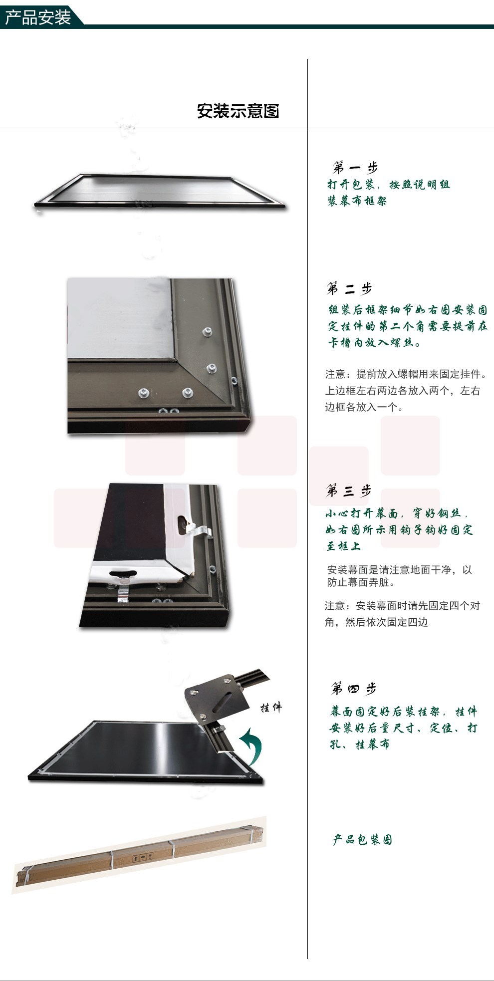 红叶(HONGYE)画框幕布100英寸4:3投影幕布家用商用 白塑 灰塑 金属 白塑 2.03*1.54