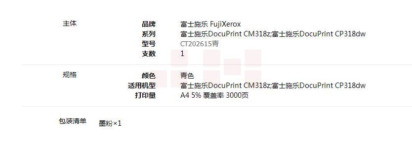 富士施乐(FUJI XEROX)CT202615 青色墨粉筒(适用于CM318z/CP318dw)