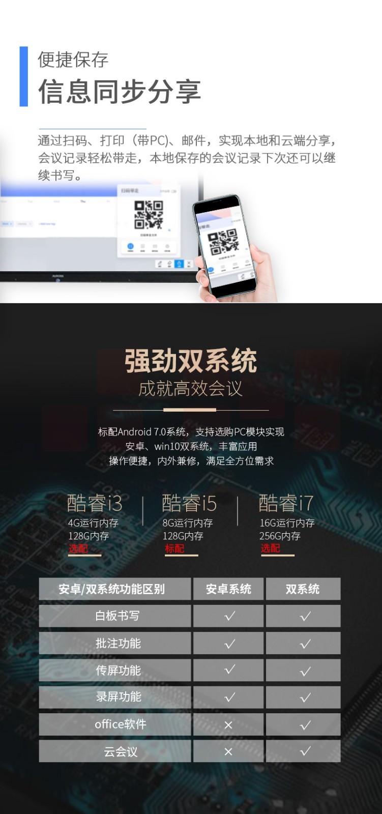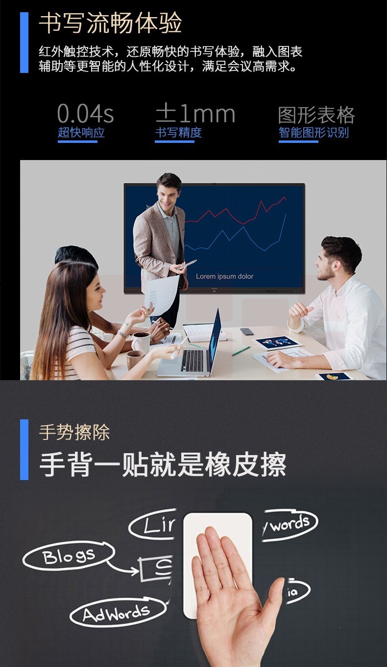 震旦AURORA 智能会议平板 商务大屏 办公电子白板无线同屏交互式平板电视 SD86CA 86英寸