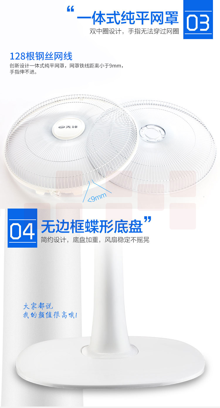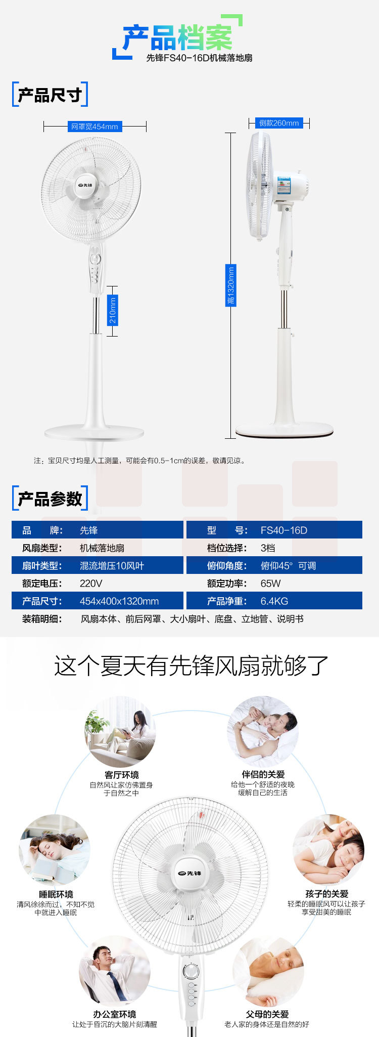 先锋(Singfun)电风扇家用节能台立式升降摇头双风叶大风量10叶落地扇FS40-16D