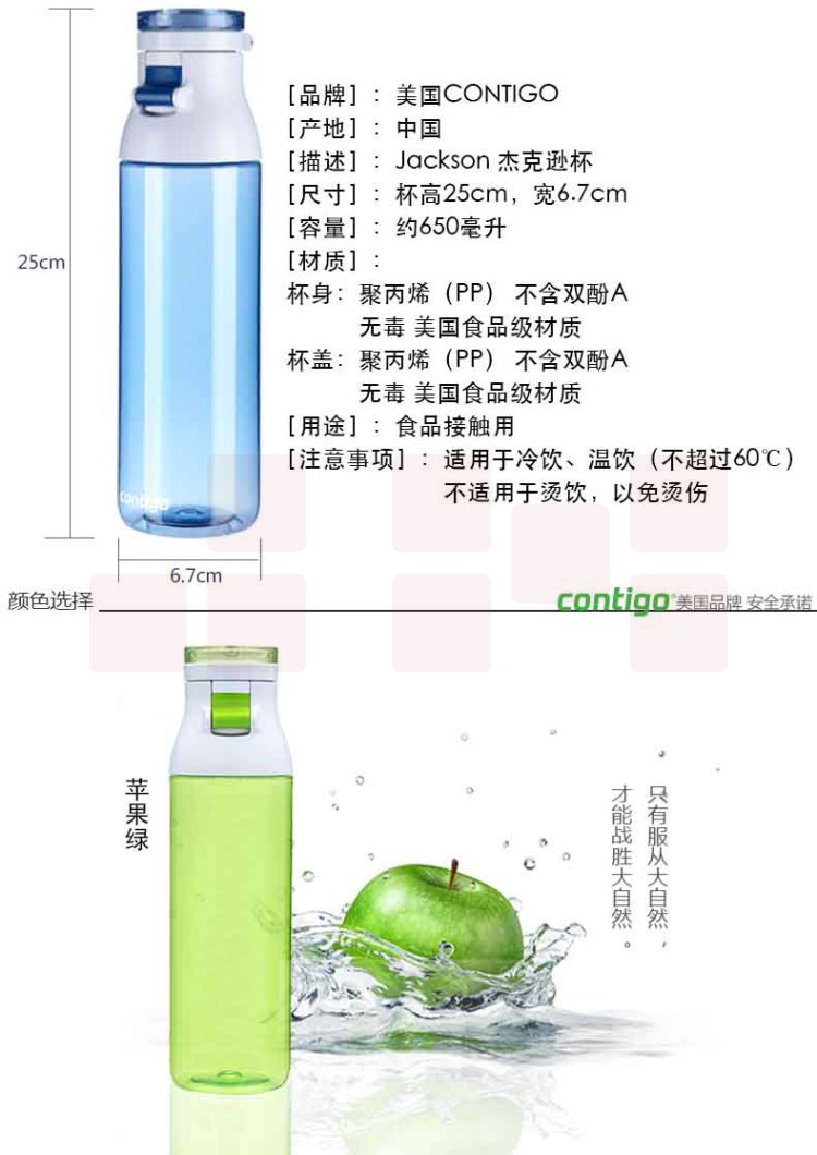 CONTIGO 美国 杯户运动水杯外防漏便携蛋白质粉摇摇杯-杰克逊650ML 紫罗兰色HBC-JAC002
