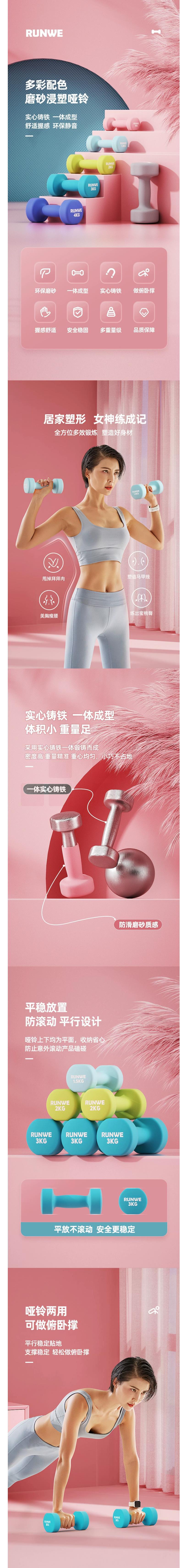 朗威 家用健身哑铃 铸铁哑铃 5kg*2 星空灰 货号:JC