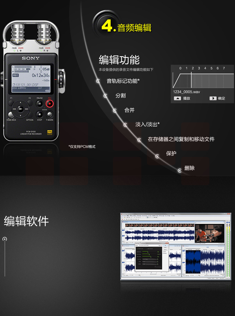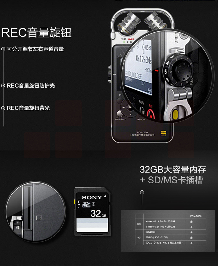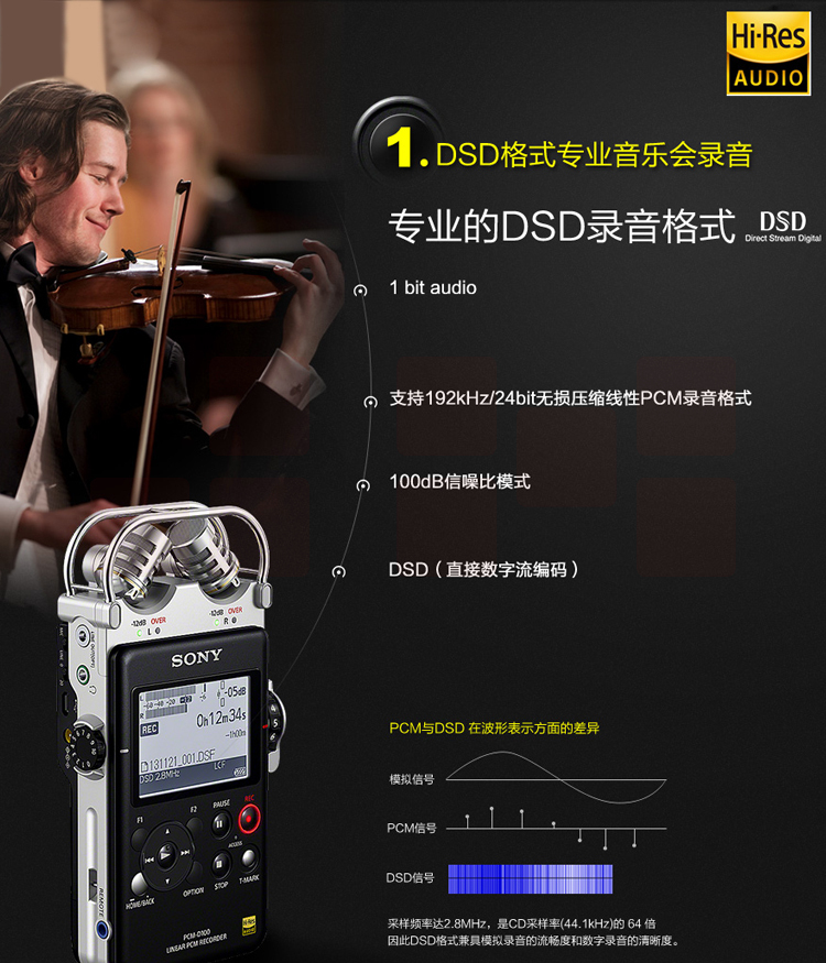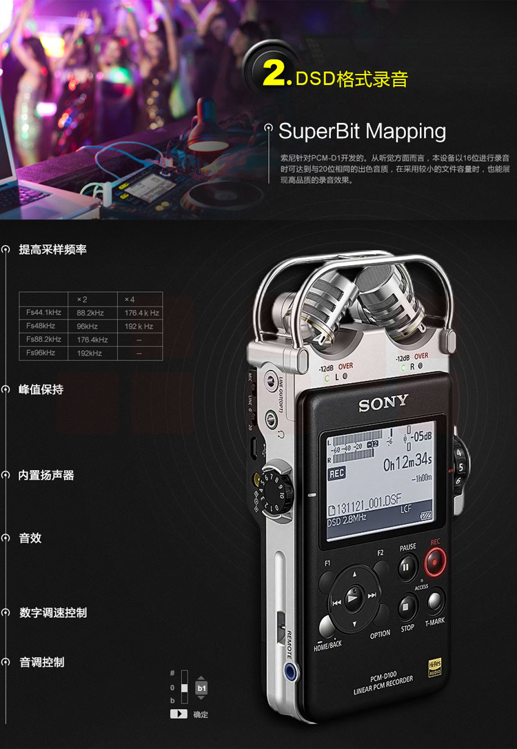 索尼(SONY) PCM-D100 数码录音棒 专业DSD录音格式