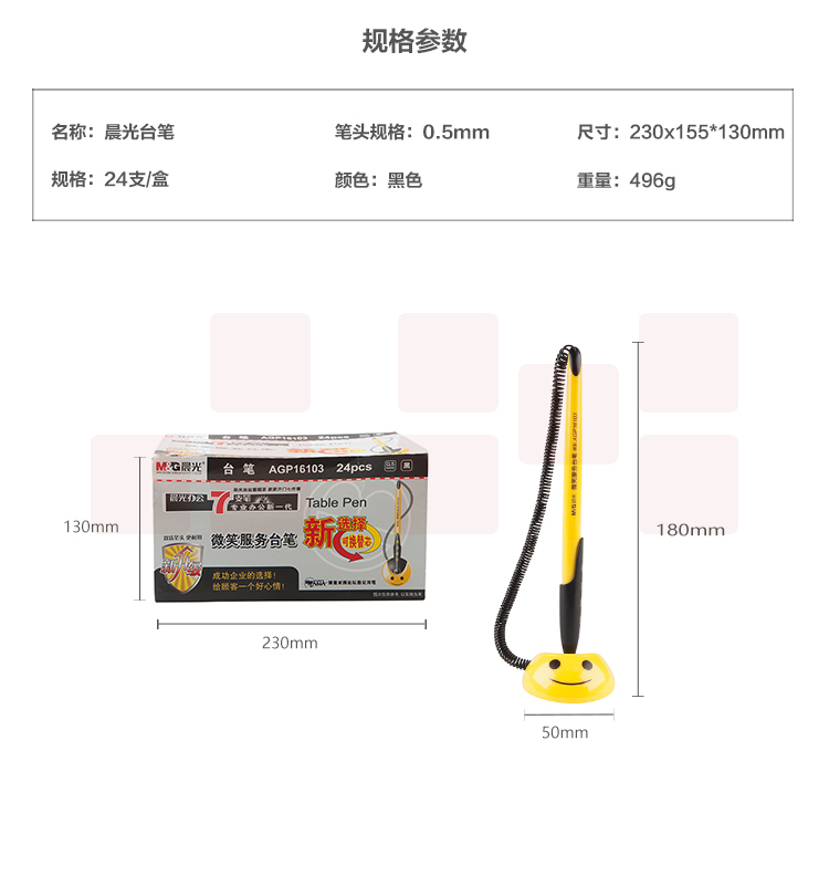 晨光AGP16103微笑0.5mm黑色台笔 可黏贴签字笔中性笔