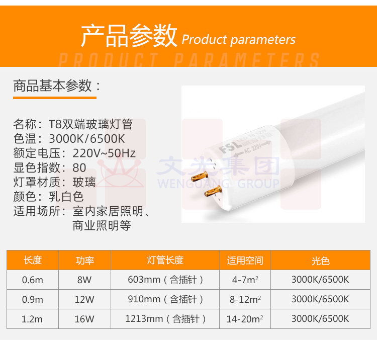 佛山 LED T8/7W(0.6米) 灯管3000k/暖光