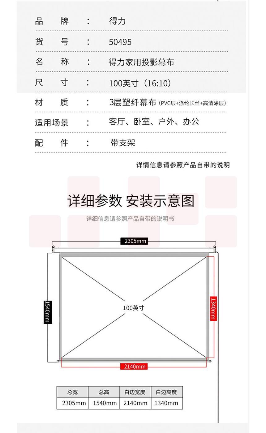 得力(deli)100英寸16:10支架幕布 家用投影幕布 家用投影幕布 50495