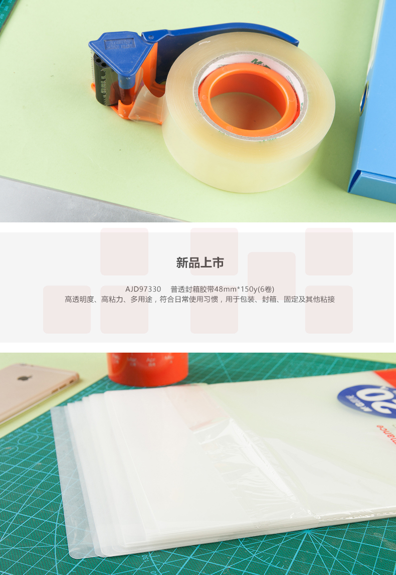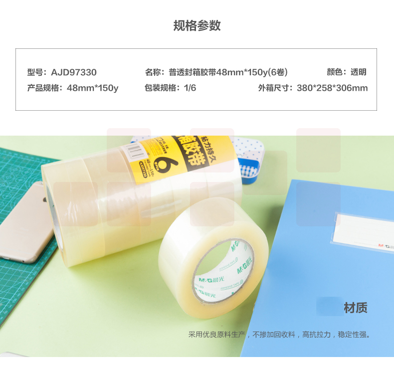晨光封箱胶带48mm*150y(6卷装)AJD97330透明胶带