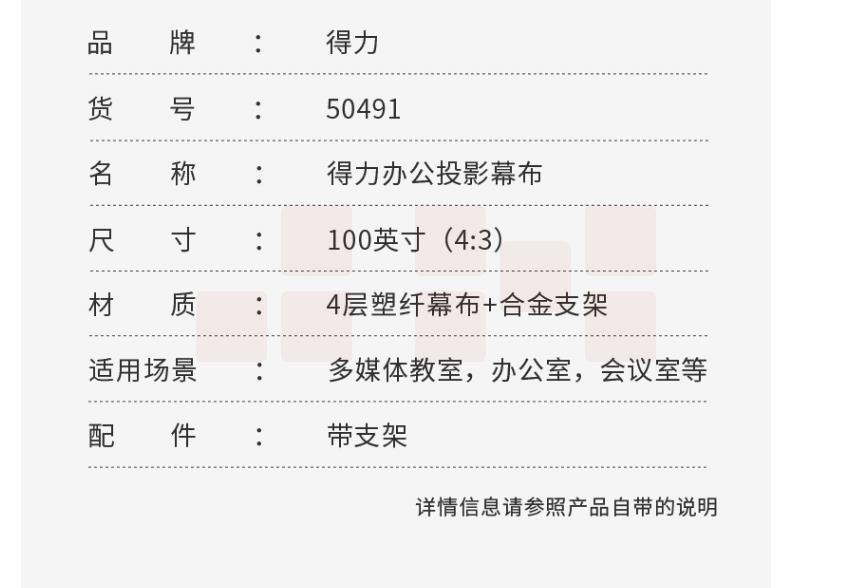 得力(deli)100英寸 4:3 投影支架幕布投影布50491