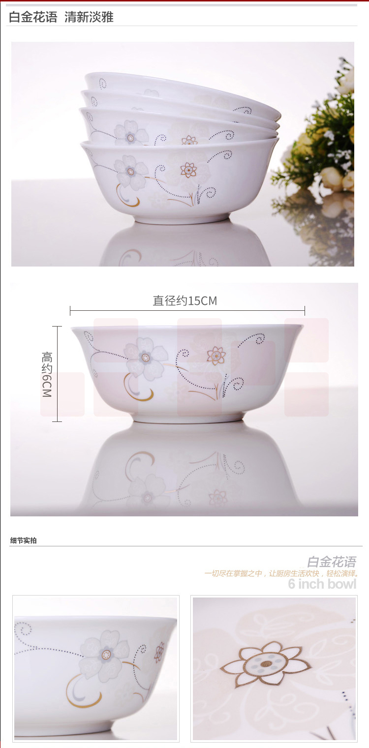 乐享 骨瓷面碗/6英寸大碗4件套装 白金花语