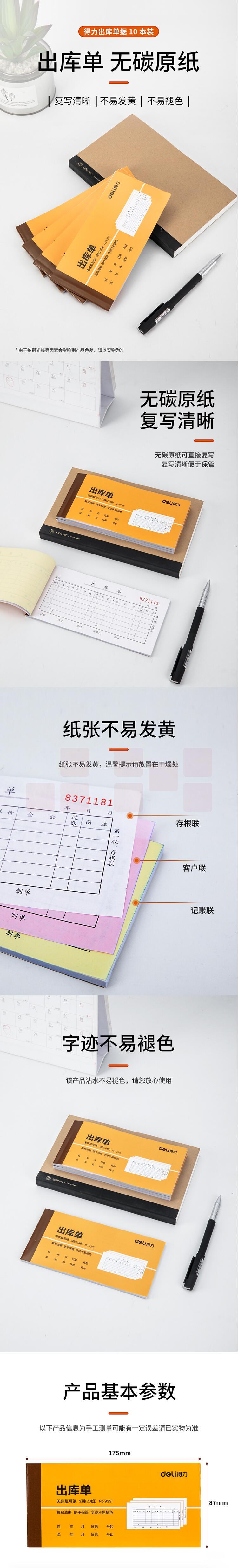 得力(deli) 9392 10本无碳复写三联入库单据