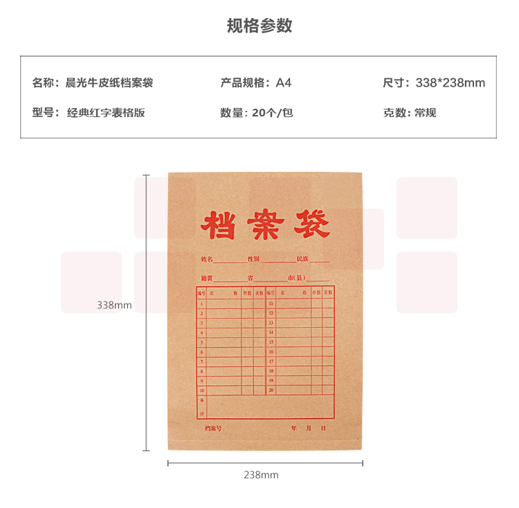 晨光(M&G)牛皮袋纸质档盒袋A4档案袋资料袋 20个/包 APYRA610