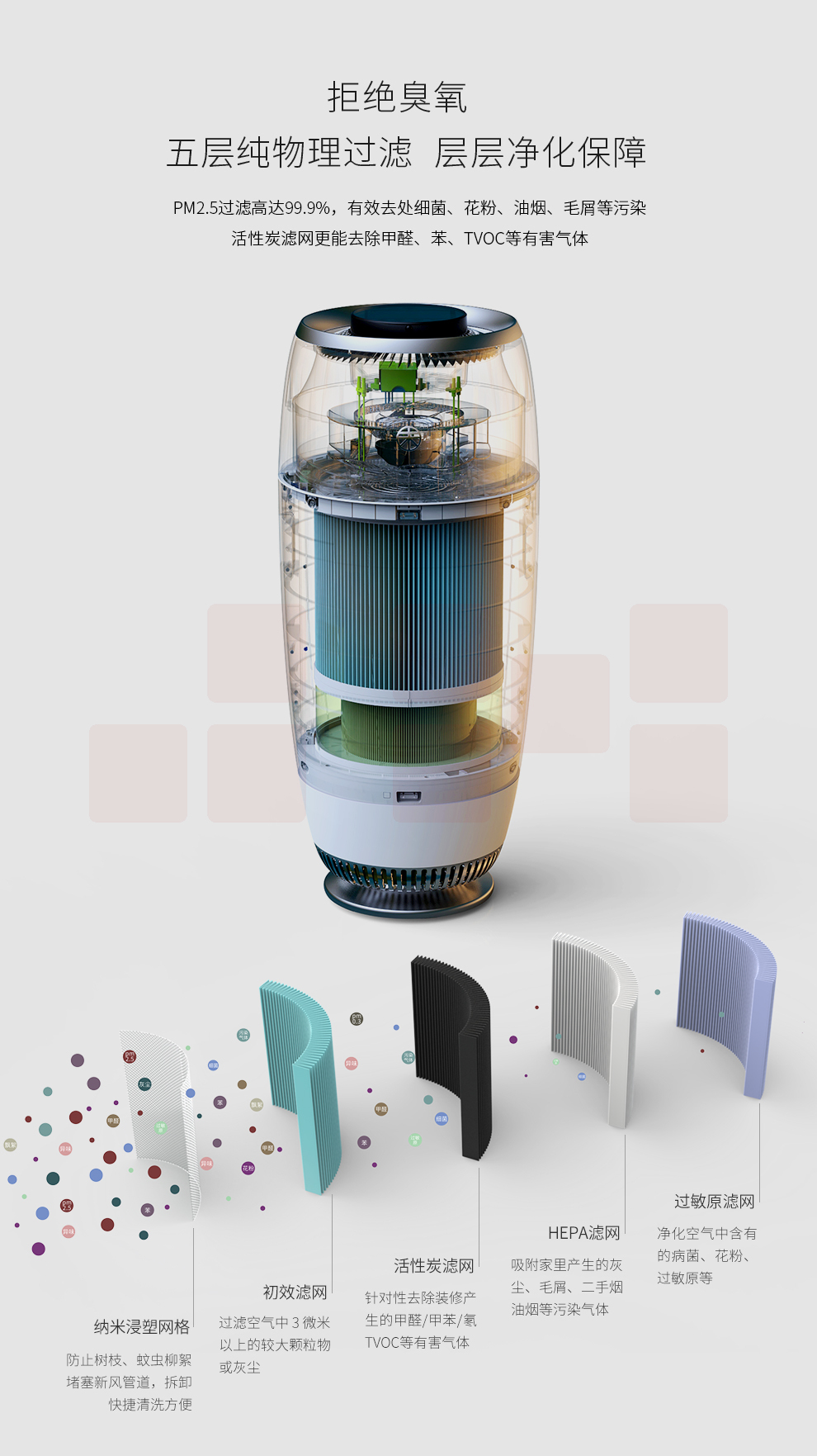 高达640m³/h的CADR值、120m³/h的新风量,每天为家灌溉280万升近三百万升的森林级空气。极速的净化能力,让每台MR.FUTURE ®未来先生适用于80平米左右的空间,每12分钟对空间彻底净化一次,顷刻间让房间仿佛置身于森林般的清新中。