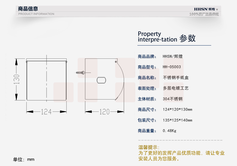 辉煌(HHSN)卫浴卫生间不锈钢厕纸架浴室卷纸架纸巾盒手纸盒盒装 HH-05003