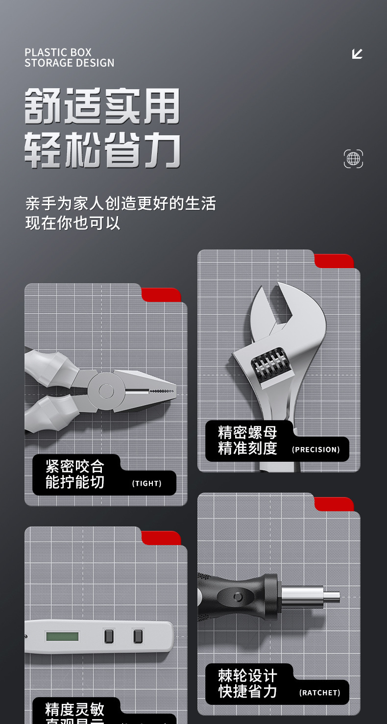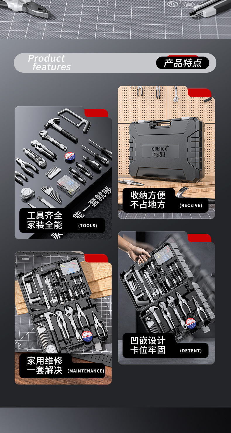德国进口家用工具箱套装多功能五金电工维修组合家庭车载100件套