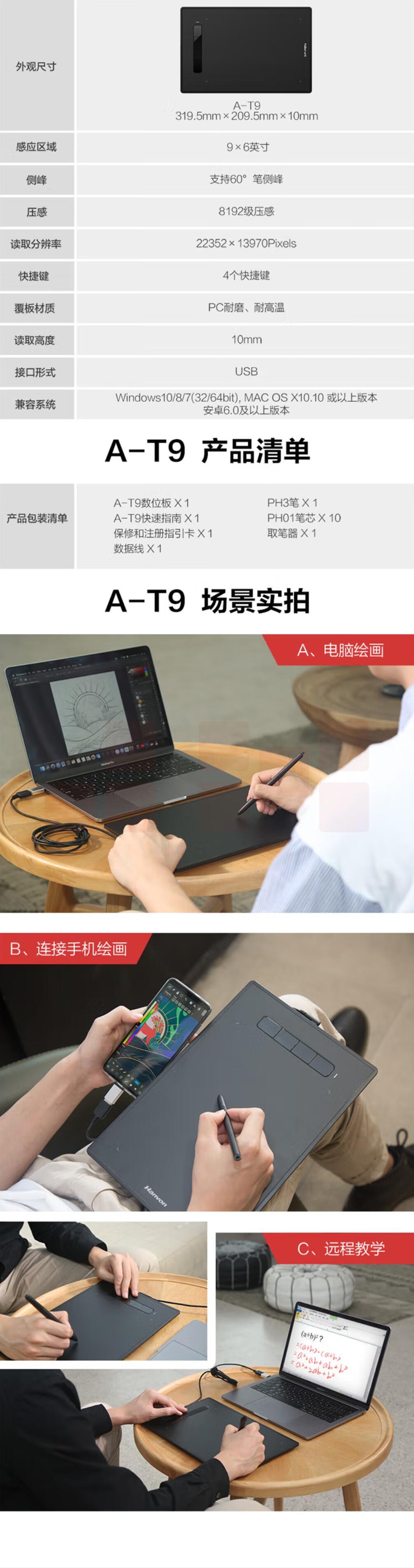 汉王 AT-9 数位板 手绘板 电脑绘图板 电子绘板