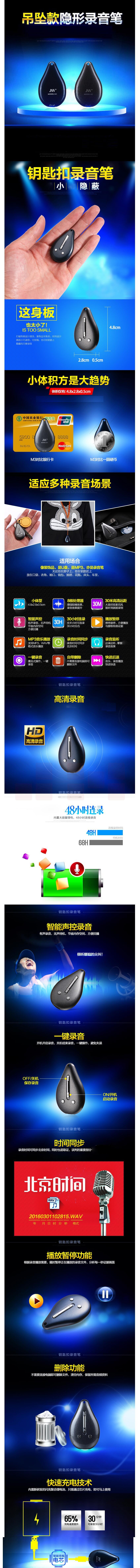 JNN M3吊坠录音笔 超远距离微型专业高清隐蔽录音器 MP3 宝石蓝 8G