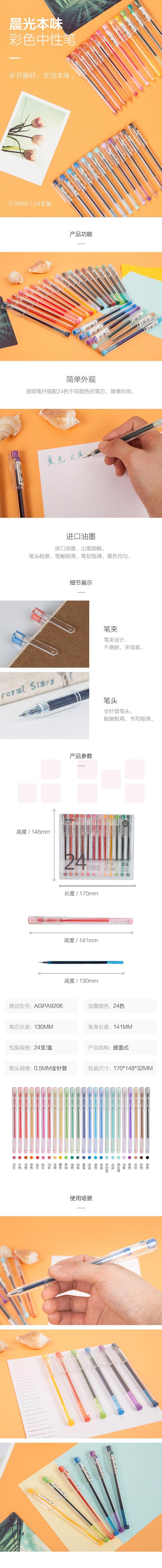 晨光 彩色中性笔0.5mm本味24色水笔 AGPA9204 (备注颜色默认黑色)(12支/盒)