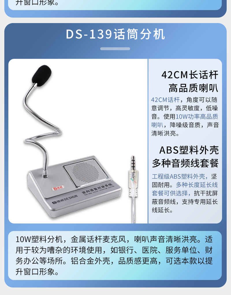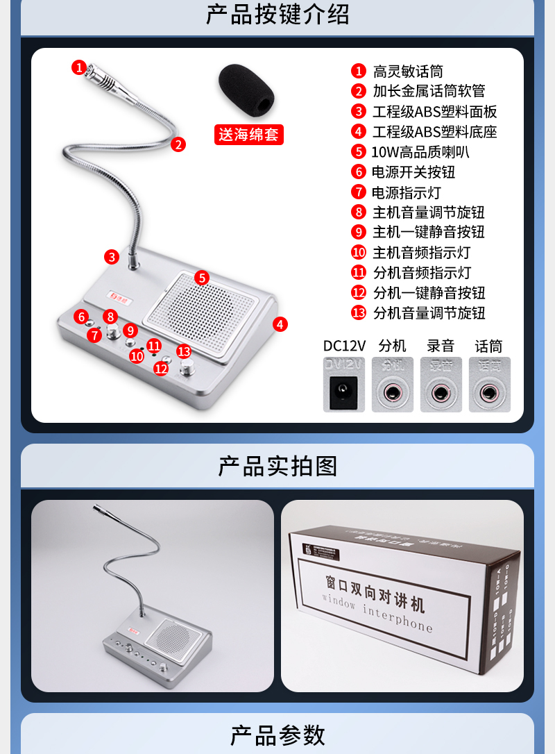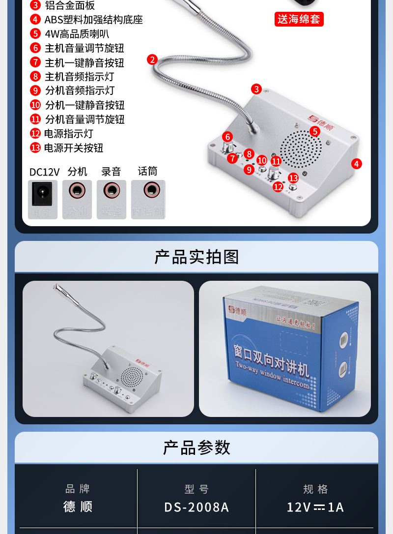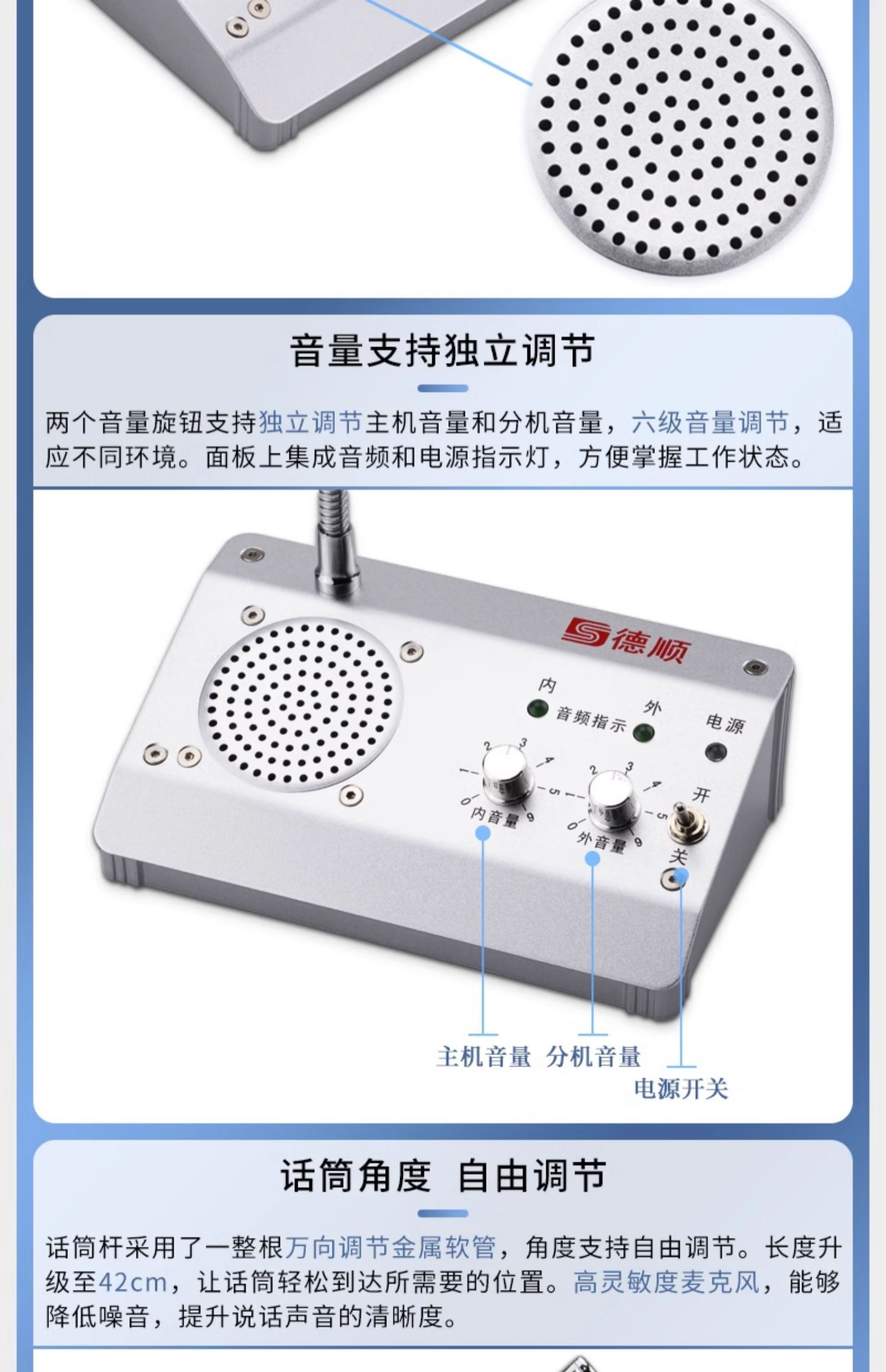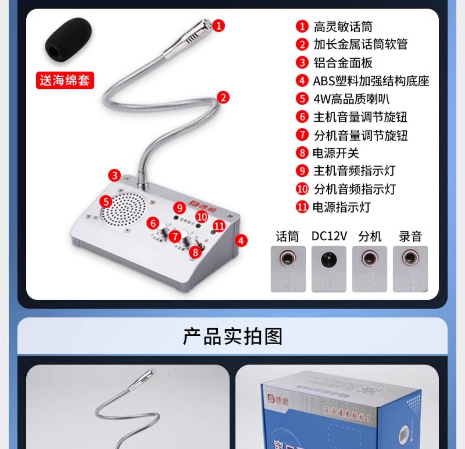 德顺1908窗口双向对讲机银行医院车站柜台售票话筒档口对话扩音器