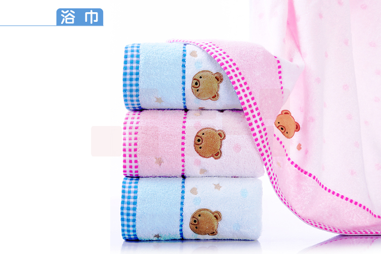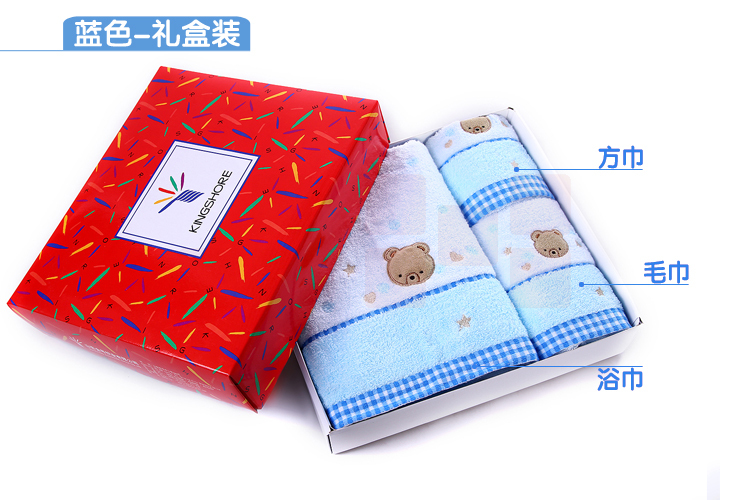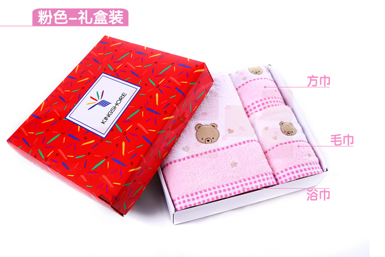 金号 (KINGSHORE ) 毛巾家纺 三件套装 纯棉方巾毛巾浴巾套巾 可配礼盒装 小熊粉色-无礼盒 44g 95g 290g