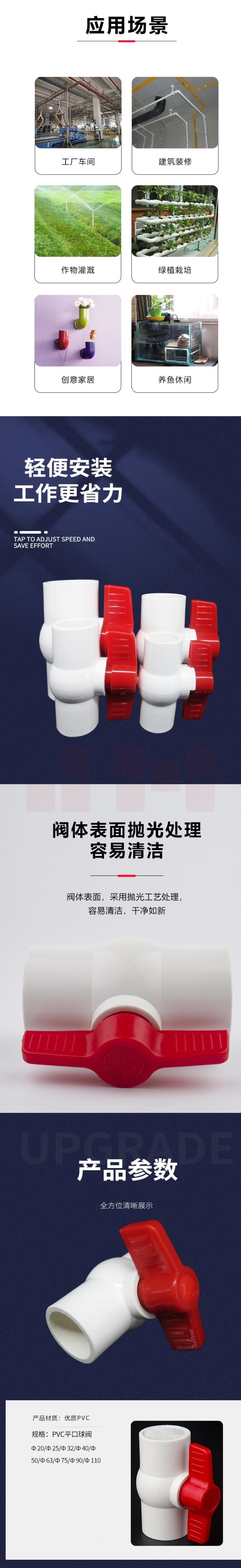 PVC平口球阀 插口开关阀门 塑料给水管阀门 50mm 货号:JC