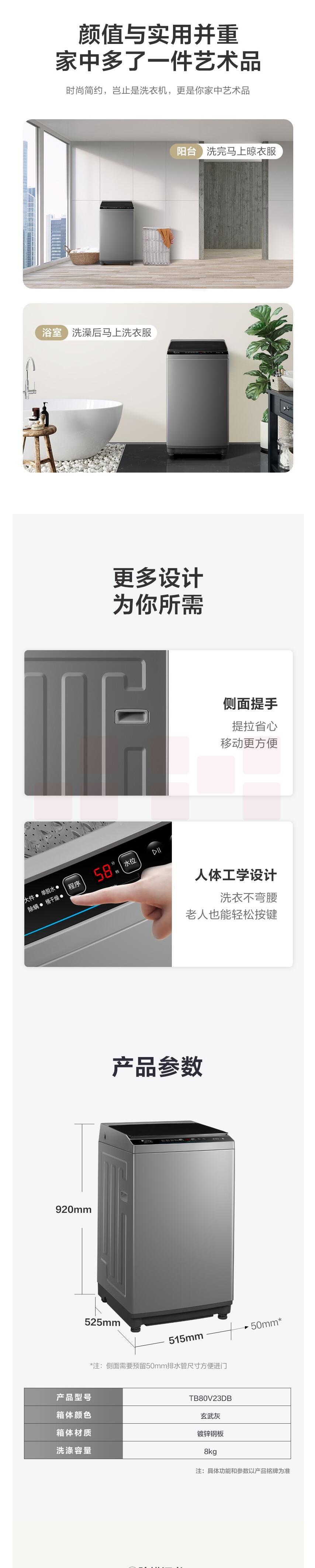 小天鹅(LittleSwan) 全自动波轮洗衣机 8公斤 TB80V23DB