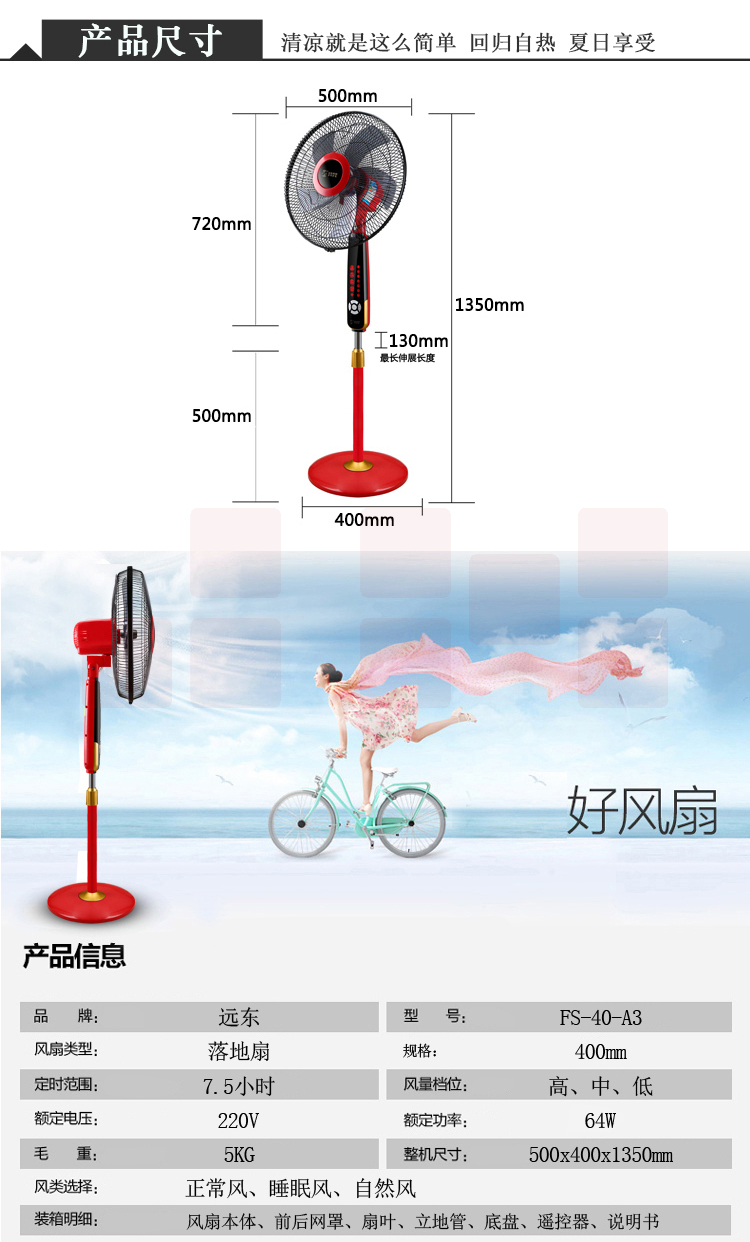 远东 ( FAREAST ) 风扇 五叶遥控落地扇 FS-40-A23A