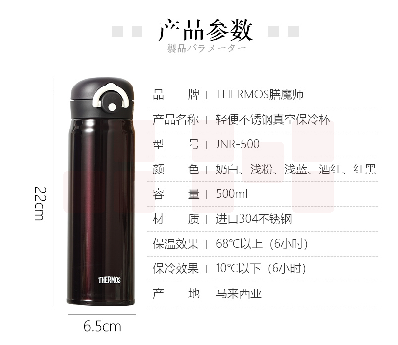 膳魔师 不锈钢保温杯500ml JNR-500CRW