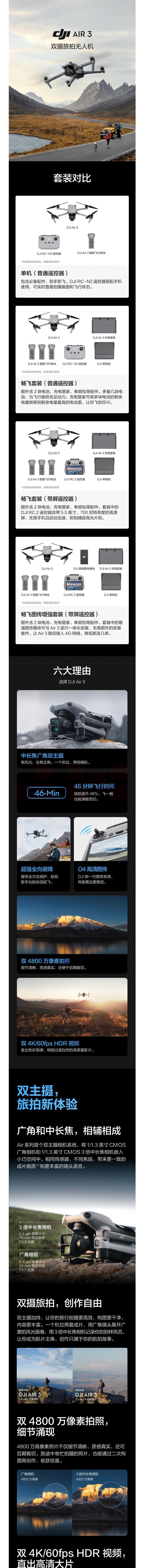 大疆 DJI Air 3 畅飞套装(带屏遥控器) 航拍无人机 中长焦广角双摄旅拍 高清专业航拍遥控飞机