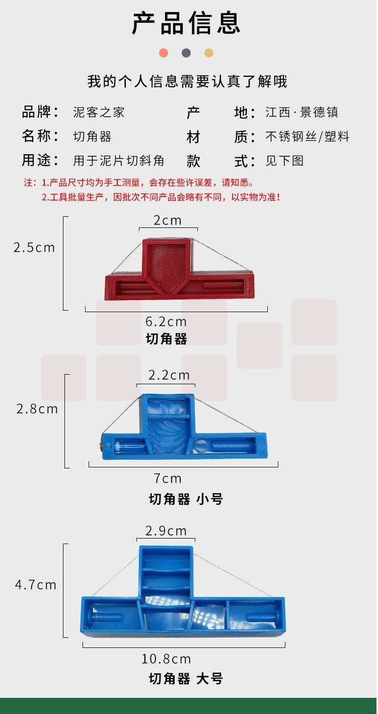 陶泥斜角切割工具 泥塑切角器 3个/套 货号:JC