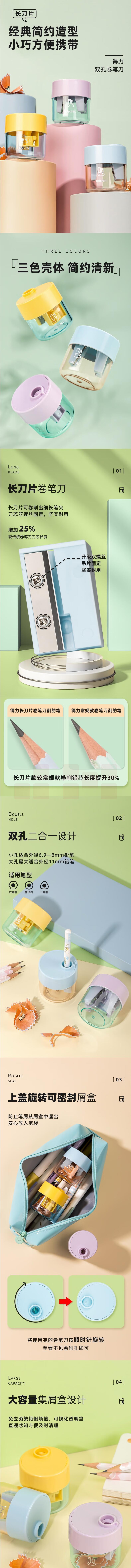 得力 双孔转笔刀削笔刀刨笔机卷笔刀12个装VB152(混色)(盒)