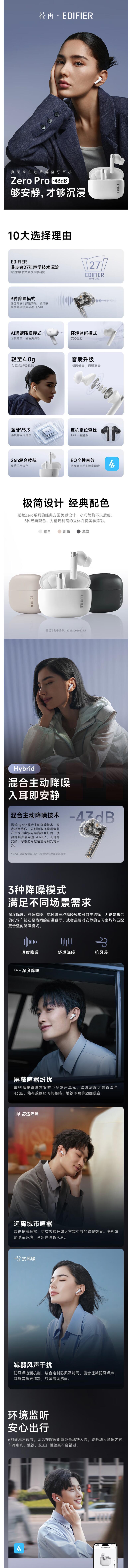漫步者 Zero Pro 真无线主动降噪蓝牙耳机 入耳式耳机
