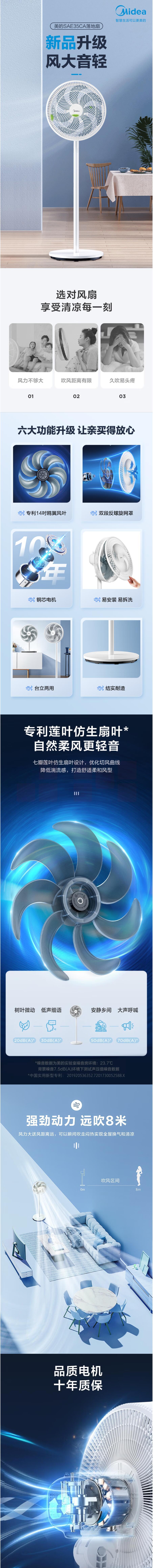 美的 7叶 静音电风扇 落地扇 七叶大风力轻音摇头扇