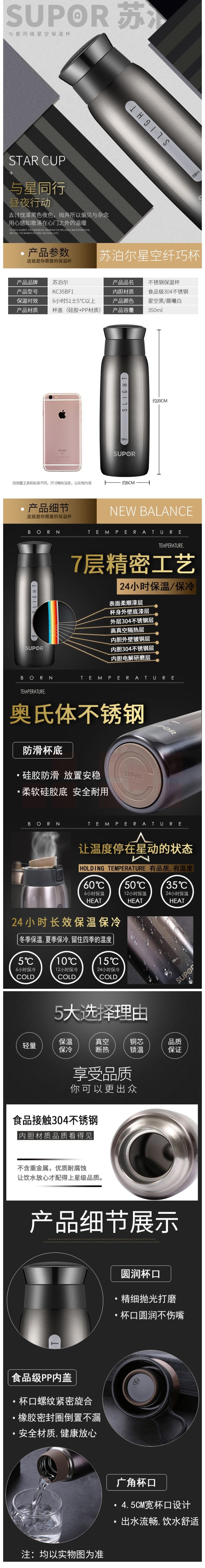 苏泊尔(SUPOR) KC35BF1 350ML真空保温杯304不锈钢经致星空保温杯 纤巧·墨银 货号:WY