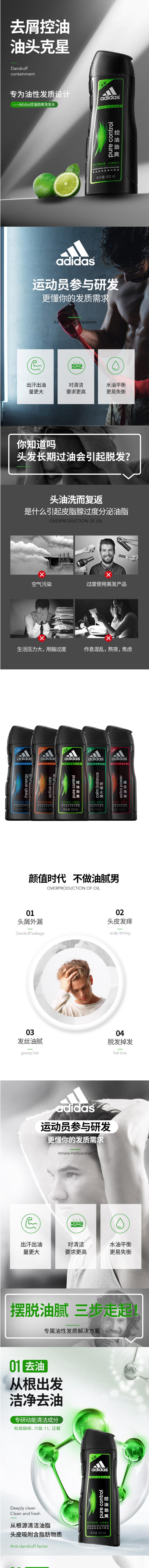 阿迪达斯 男士酷爽去屑洗发露 220ml去屑洗发水 薄荷精华深度清洁