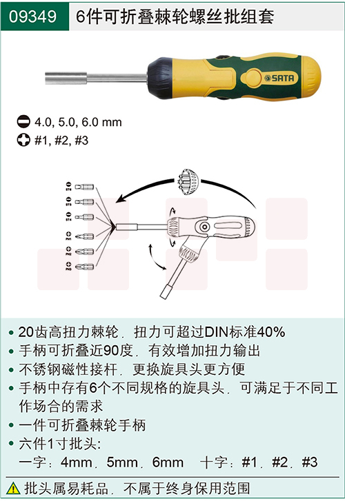 世达(SATA)6件可棘轮螺丝批组套货号09349