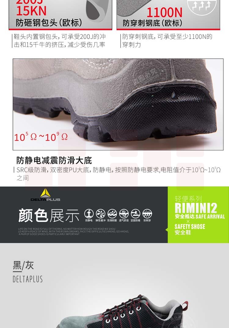 代尔塔彩虹系列安全鞋 301322 蓝灰-防砸 防穿刺 防静电