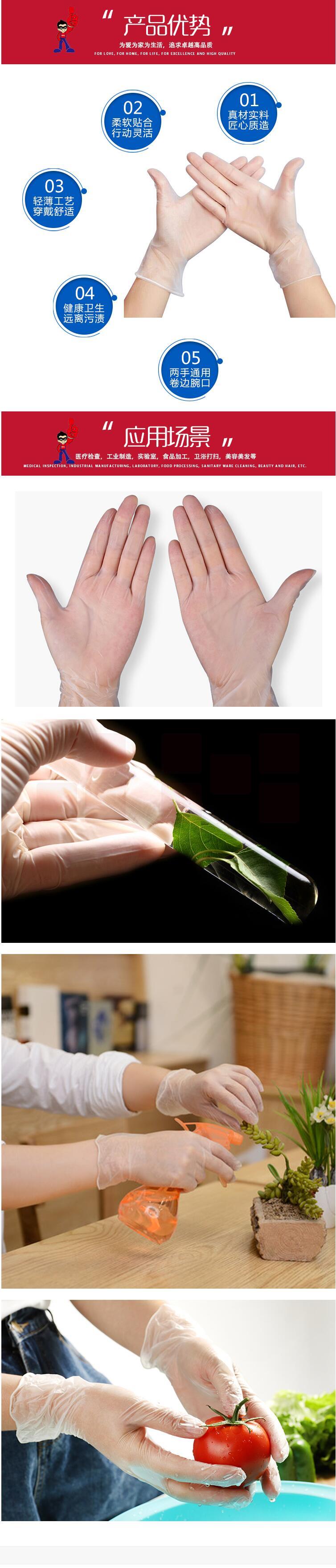 帮手仕 一次性PVC检查手套(无粉)盒装抽取