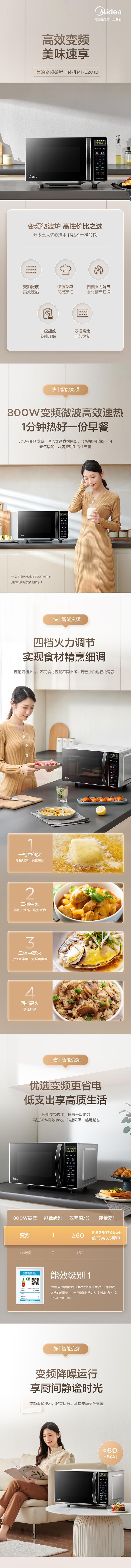 美的 M1-L201B 20升变频智能 微波炉 微烤一体机 智能菜单光波炉
