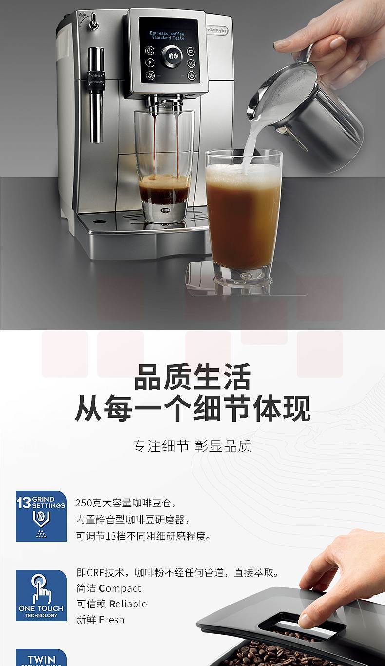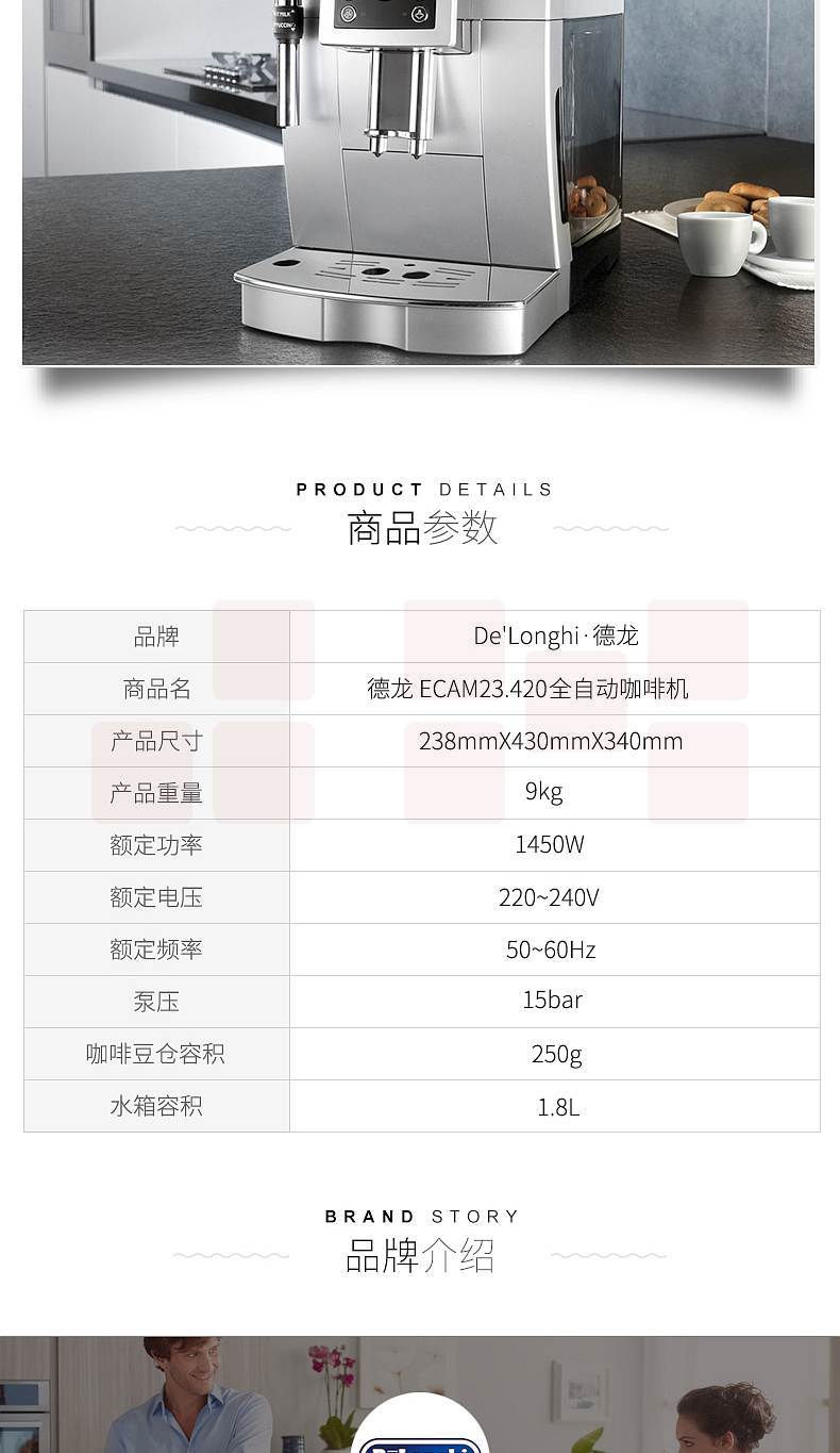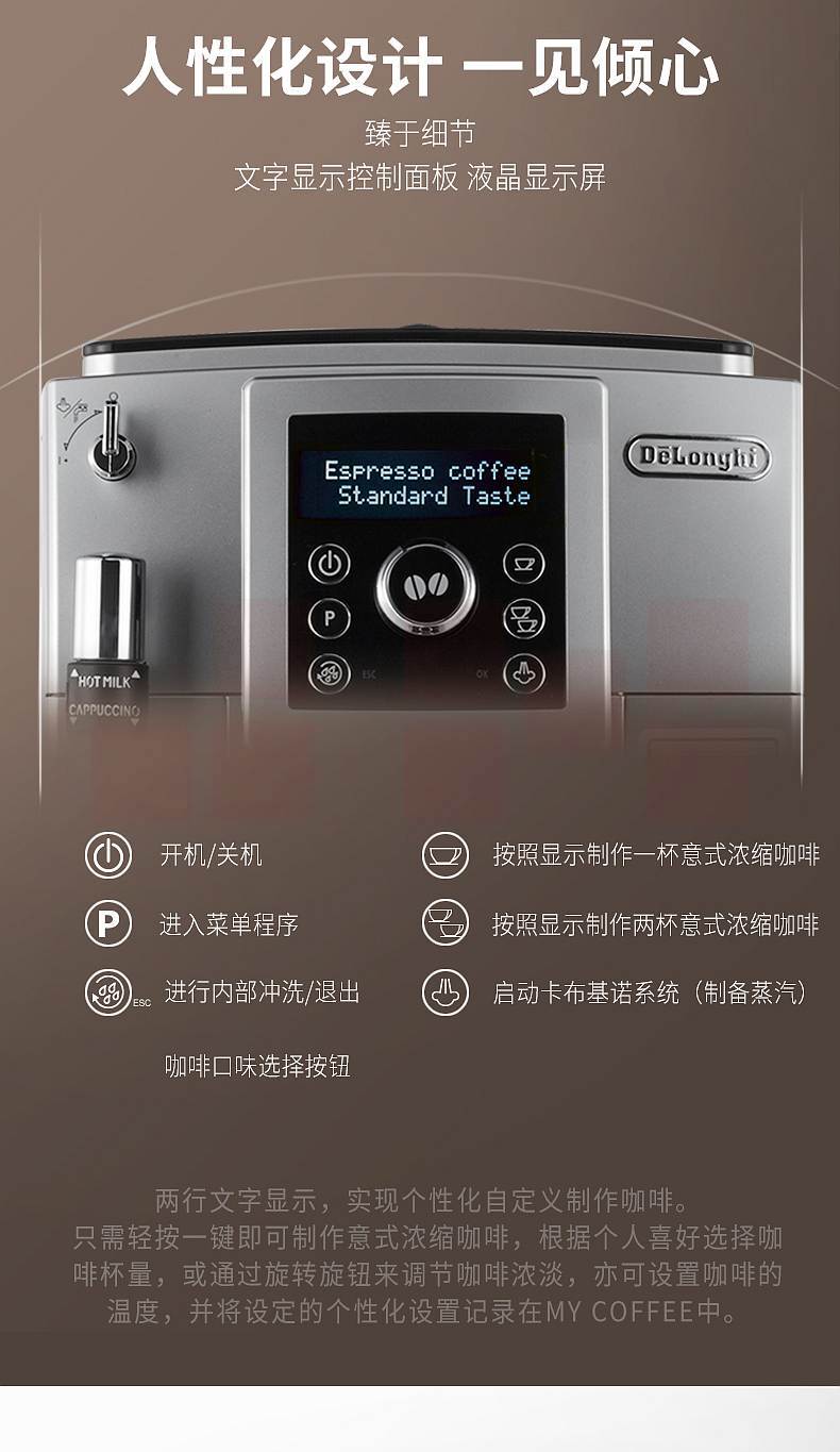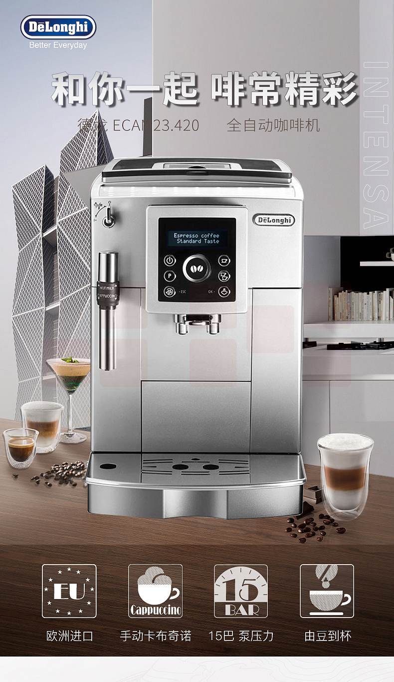 德龙(Delonghi)ECAM23.420.SB 手动奶泡系统 全自动咖啡机(个)