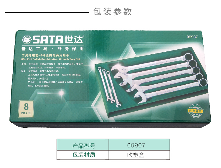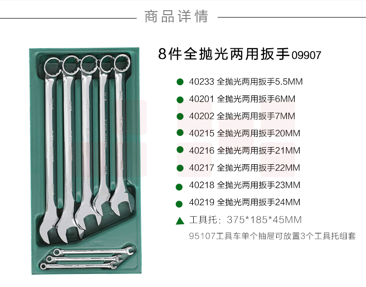 世达(SATA)工具托组套-8件全抛光两用扳手 09907